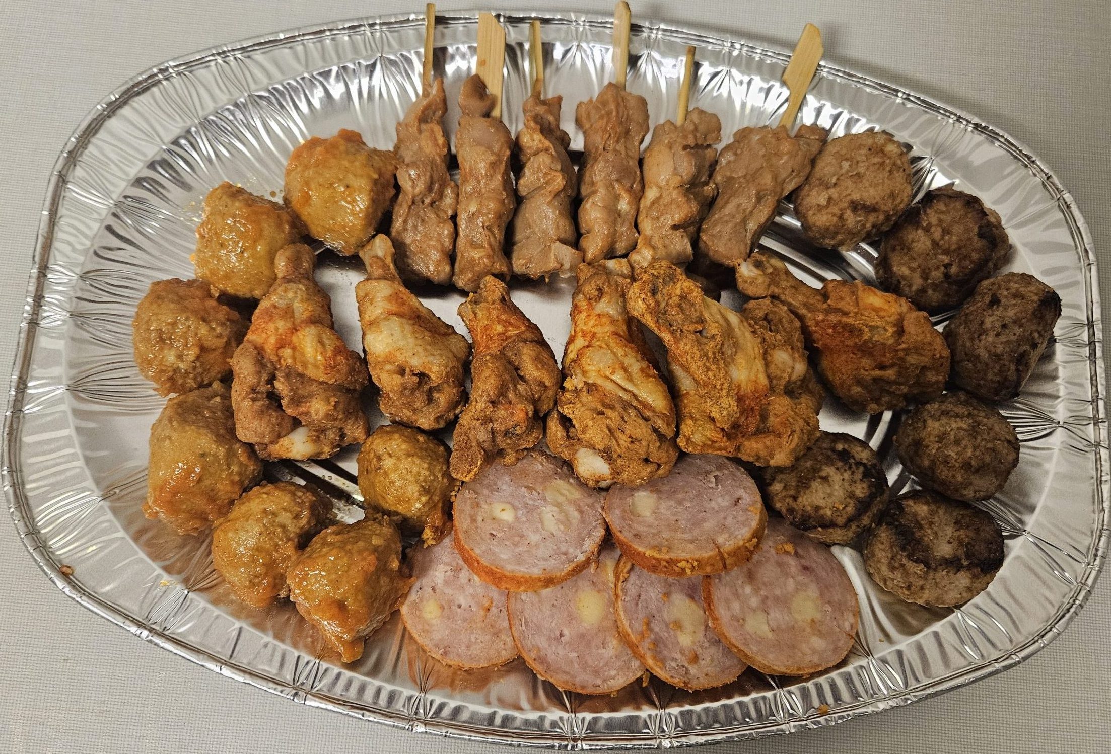 Hapjesschaal met grillworst voor in oven. 4 personen.